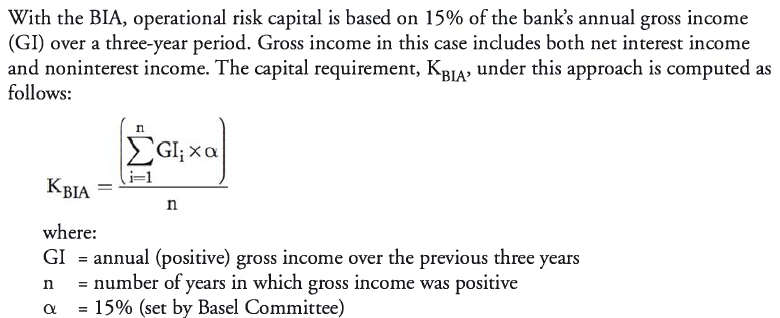 Basel II proposed three approaches for determining the operational risk capital requirement (i.e., the amount of capital needed to protect against the possibility of operational risk losses). The basic indicator approach (BIA) and the standardized approach (TSA) determine capital requirements as a multiple of gross income at either the business line or institutional level. The advanced measurement approach (AMA) offers institutions the possibility to lower capital requirements in exchange for investing in risk assessment and management technologies.