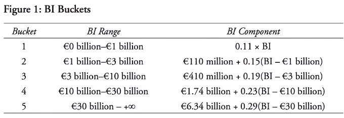 For the purposes of calculating the SMA, banks (based on their size for the BI component) are divided into five buckets as shown in Figure 1.
