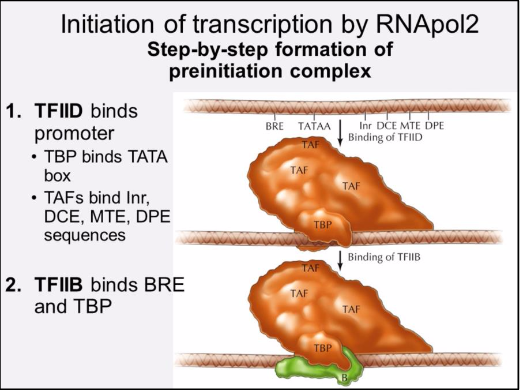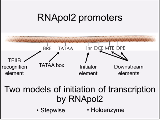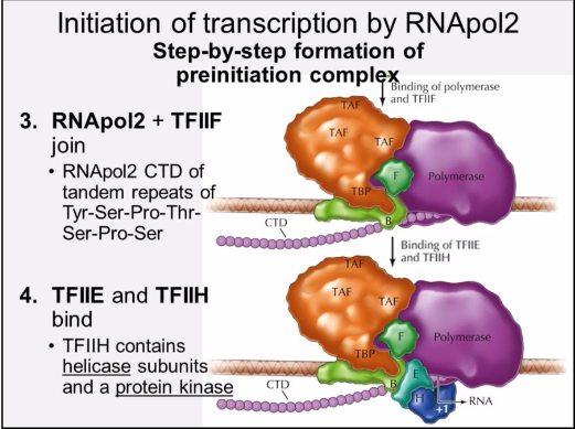 The preinitiation complex is composed of RNApol2 + five general transcription factors that are minimally required for initiation of transcription in vitro