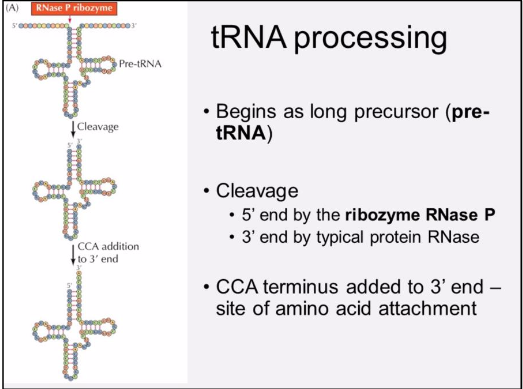Describe important aspects of tRNA processing.