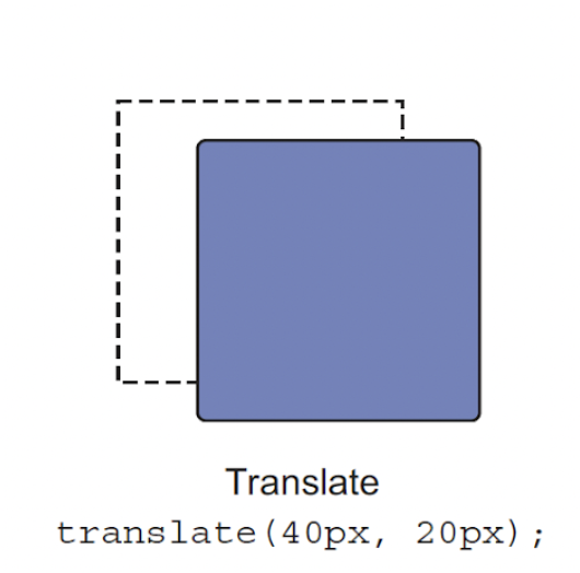 The translation transform moves an element from its current position along the X, Y, or Z axis without affecting the layout of surrounding elements.