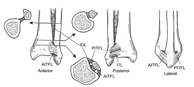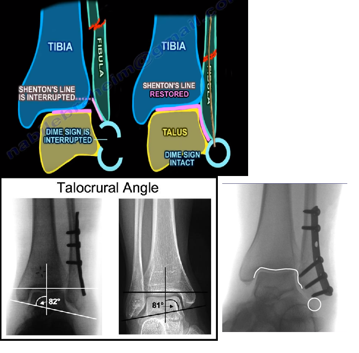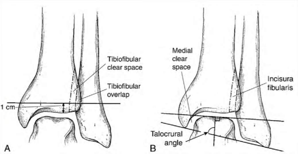 What are normal radiographic measurements at the ankle? (measurements 1cm proximal to plafond)