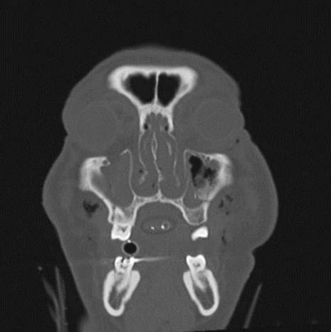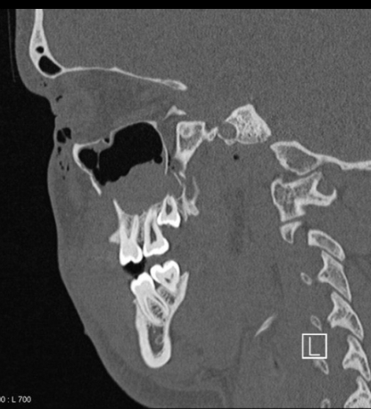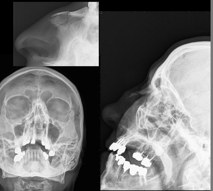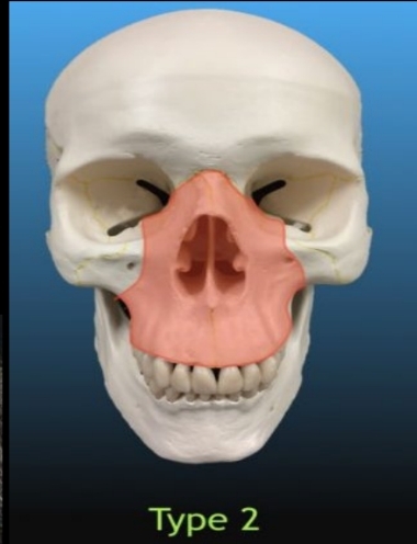 Se extiende a los rebordes orbitarios inferiores y hueso nasal