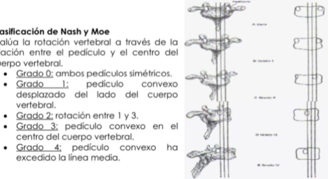 Evalua la rotación vertebral a través de la relación entre el pedículo y el centro del cuerpo vertebral