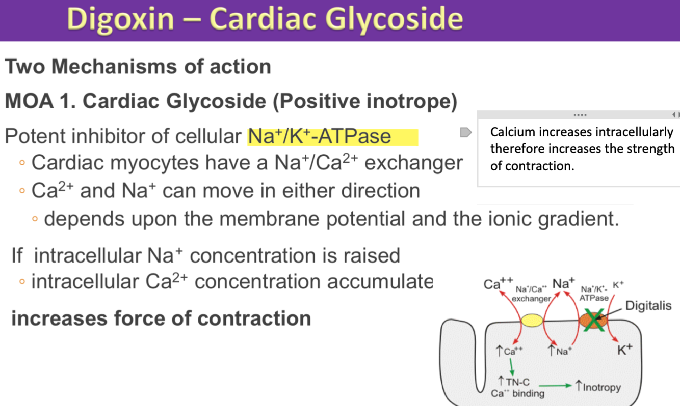 What 2 effects does digoxin have?