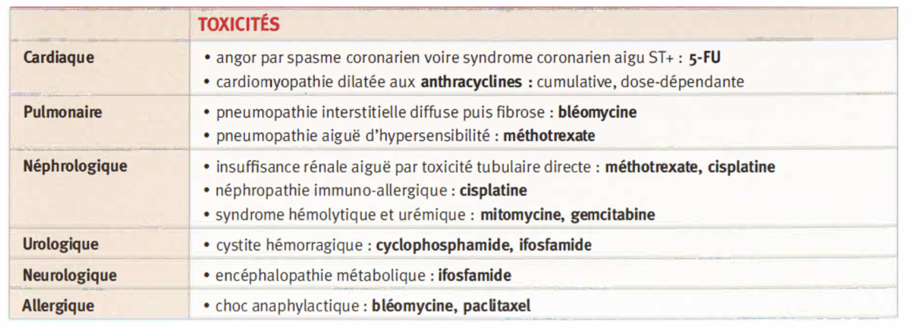 Principales toxicités des chimios