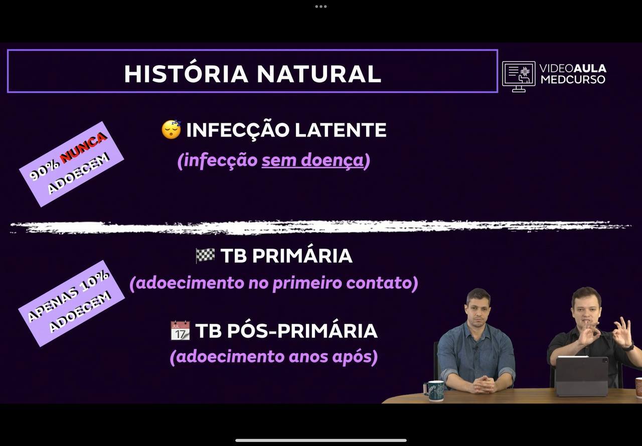 Tuberculose primária ocorre nos outros 10% que é quando a pessoa tem o primeiro contato (primoinfecçao) com bacilo de Koch porém já forma a doença ou seja ela não conseguiu fazer o granuloma cacioso da imunidade celular.