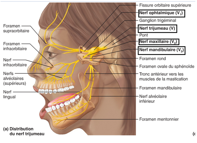 Comment s’appellent les 3 branches du nerf trijumeau?