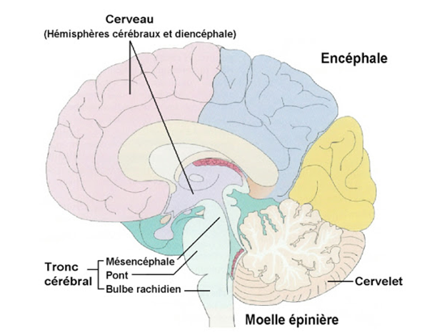 Le tronc cérébral comprend le mésencéphale, le pont et le bulbe rachidien