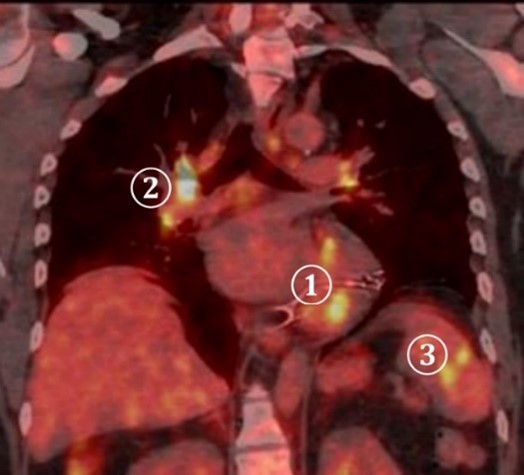 För närmare kartläggning av inflammationens utbredning utförs PET-DT