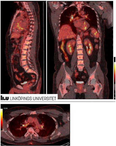 Tolka bilderna. Vilka anatomiska strukturer ”lyser” (inflammation/ämnesomsättning)?