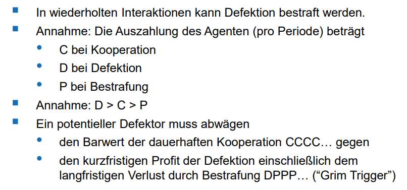 → Mit einem unendlichen Zeithorizont ist Kooperation profitabel, wenn gilt C + C/r > D + P/r
