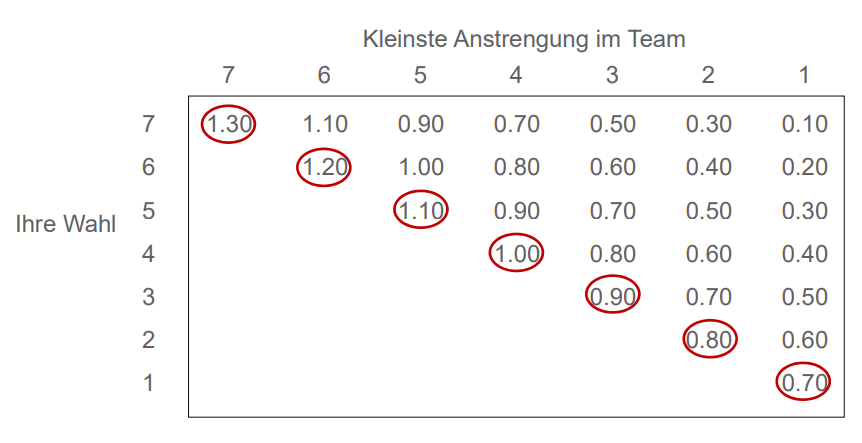 Weakest-Link-Spiel → Auszahlungsmatrix