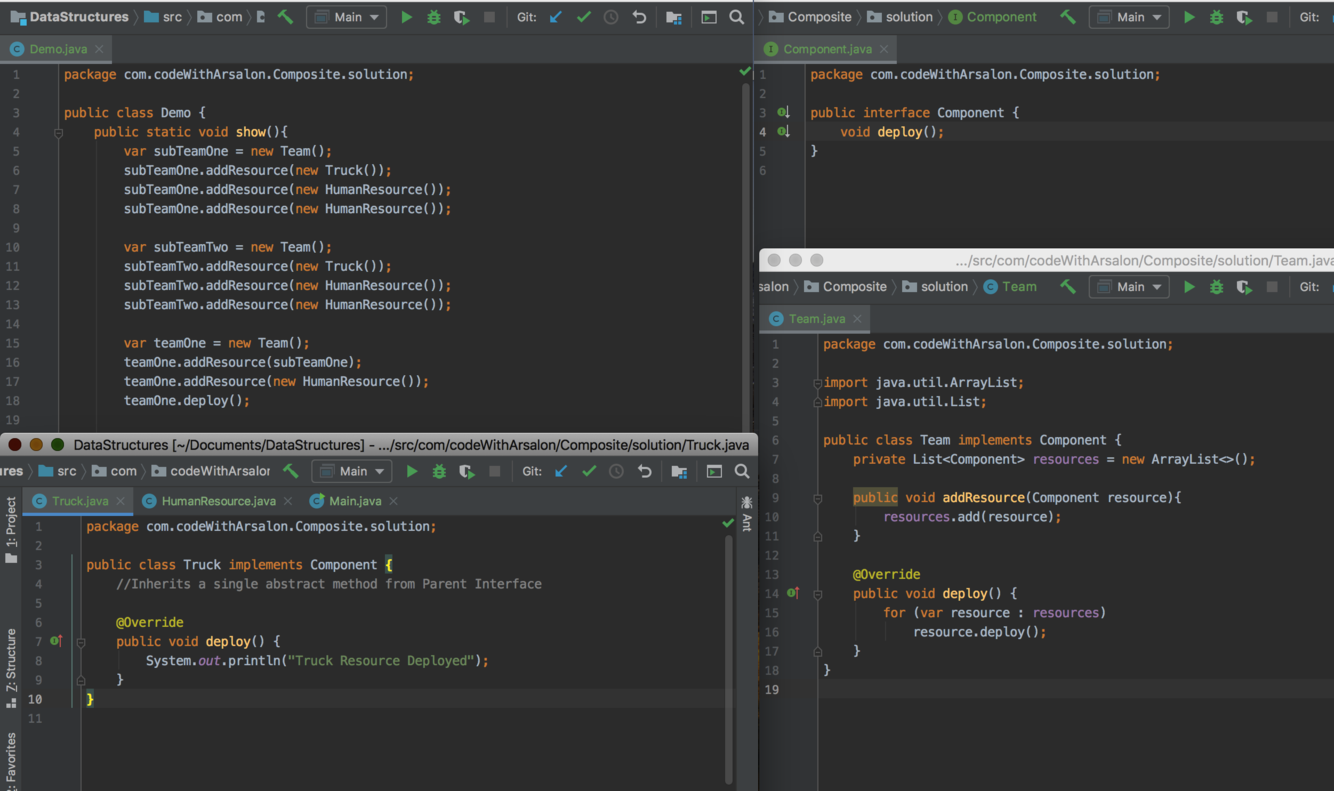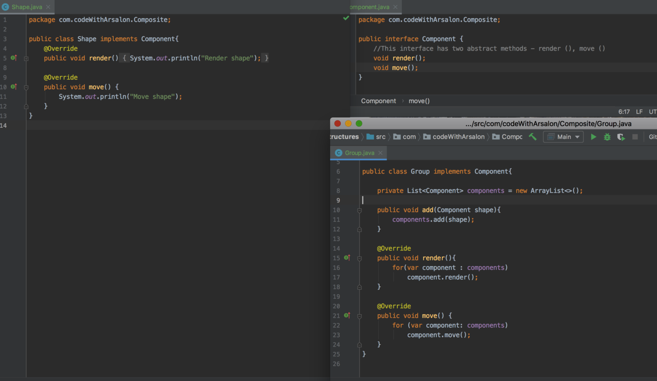 Both pattern implementation uses composition relationship