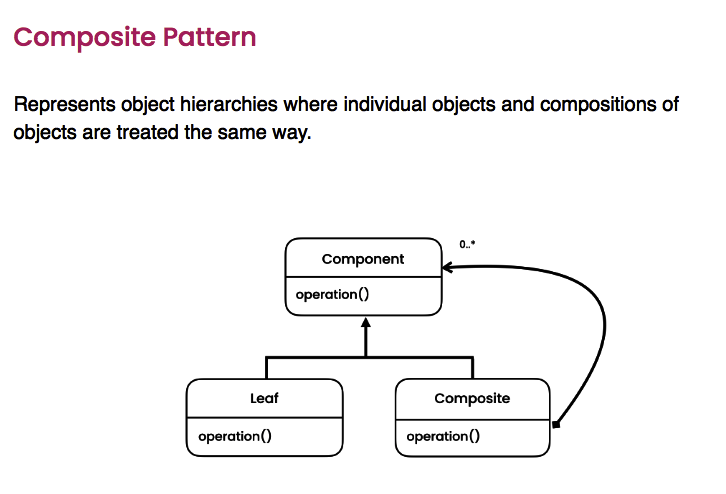 Allows us to represents object hierarchies where individual objects and compositions of objects are treated the same way