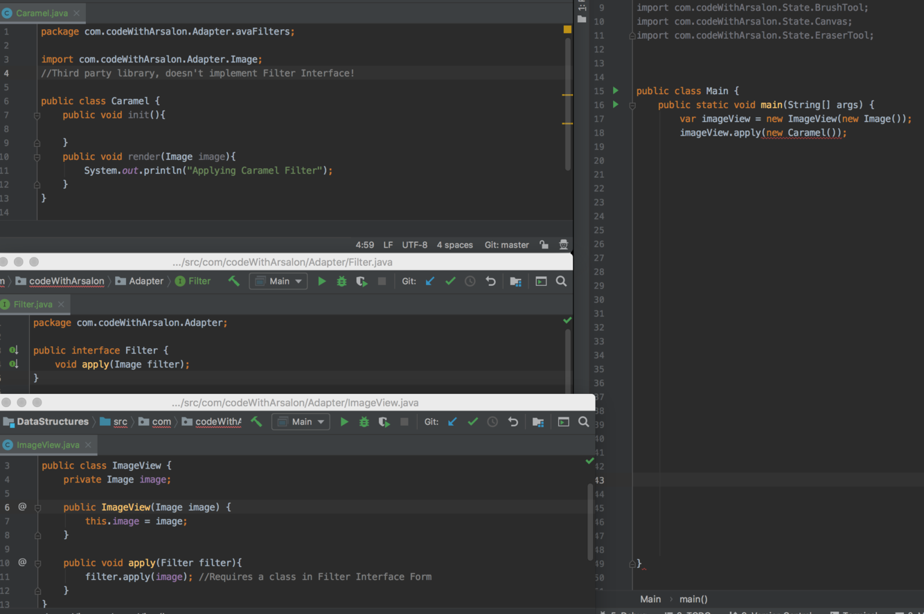 Adapter Pattern allows us to change third party filter Interface to match required form for viewImage (Filter Interface)