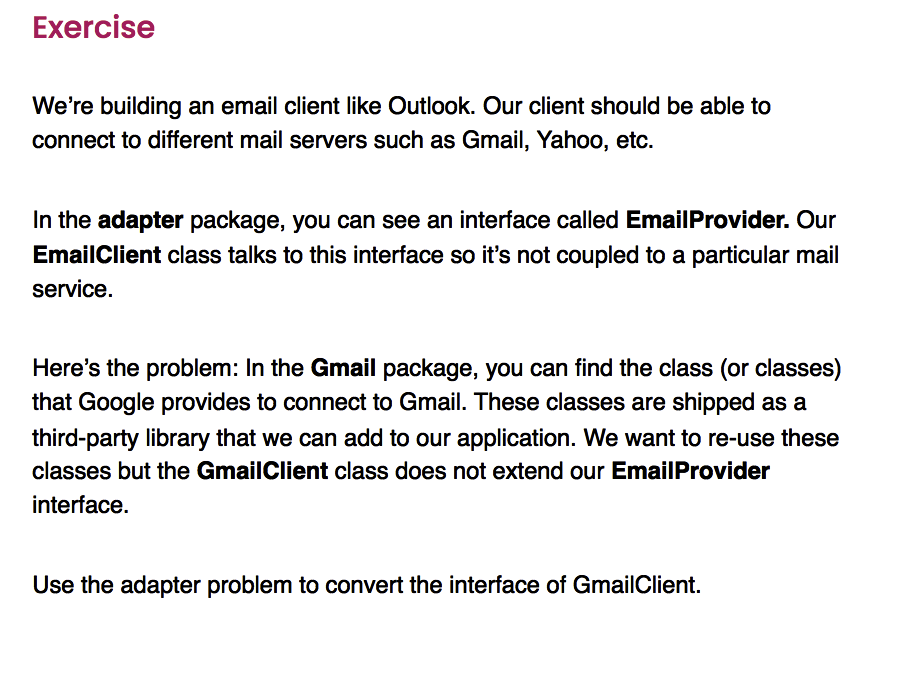 What is an excercise using the Adapter Pattern?