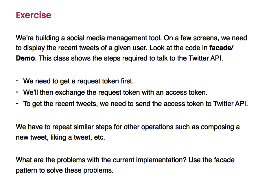 What is an excercise using Facade Pattern?
