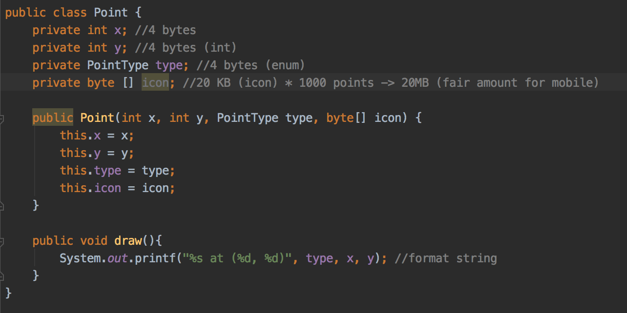 The point class consumes a fair amount of memory
