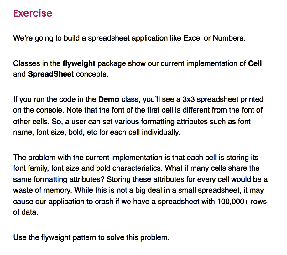 What is an excercise using the Flyweight Pattern?