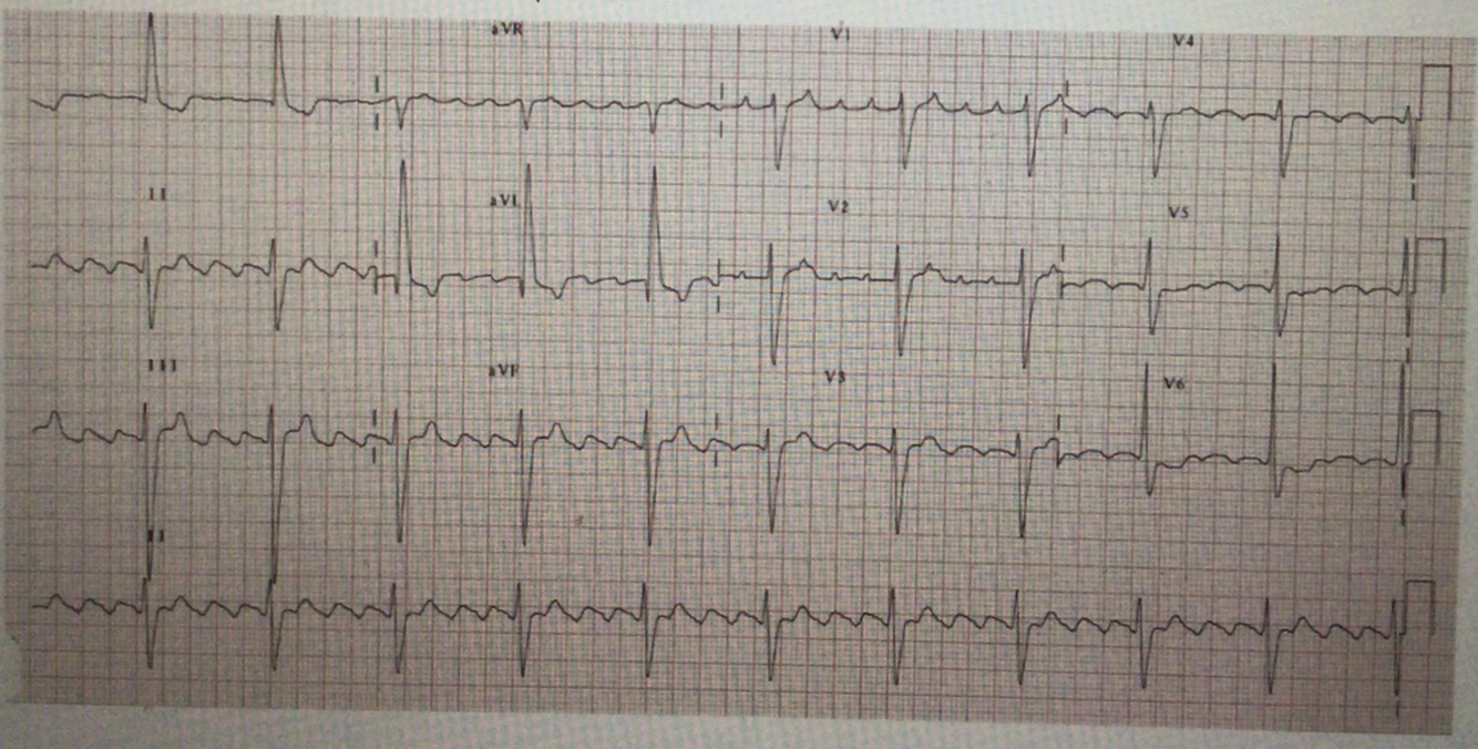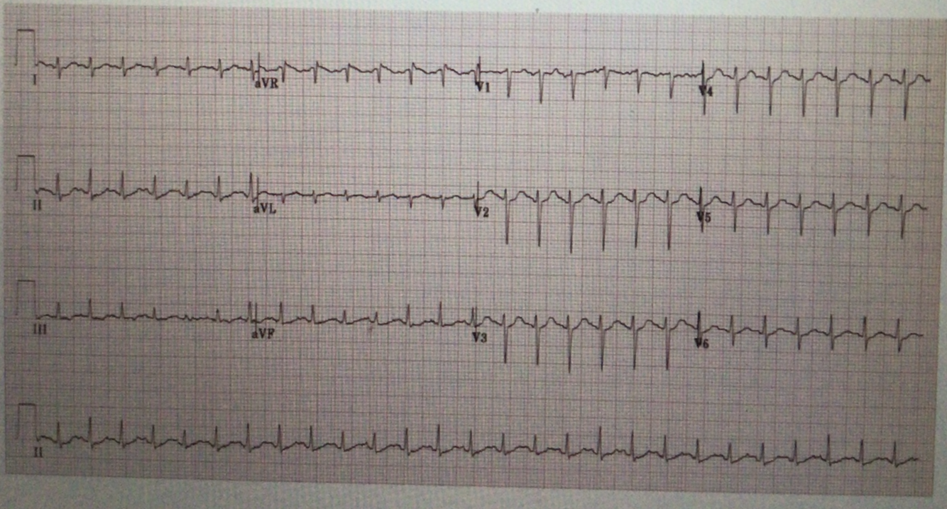 What rhythm is displayed on the ECG shown?