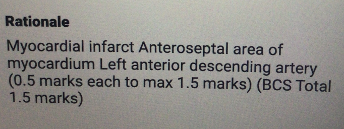 What is the diagnosis? Which part of the heart has been compromised? Which artery is most likely to have been occluded?
