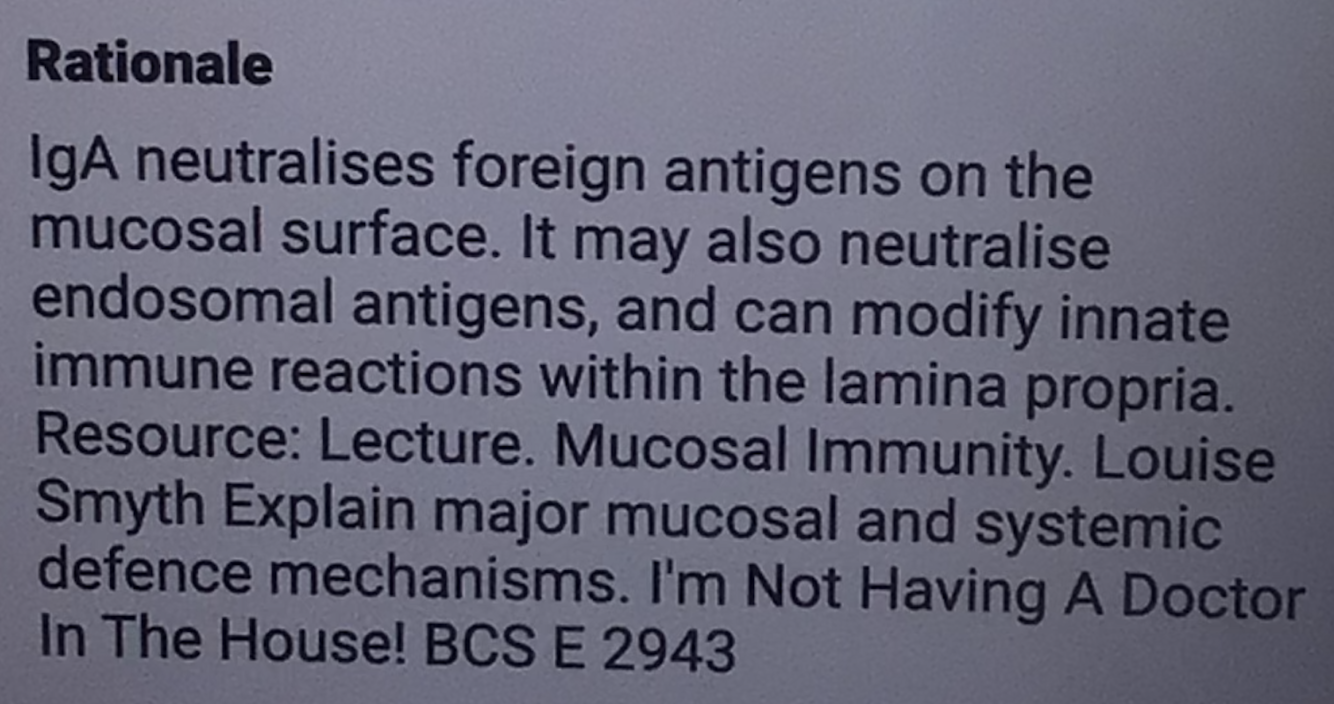 = e. Reduced ability to neutralise pathogens and toxins on the mucosal surface