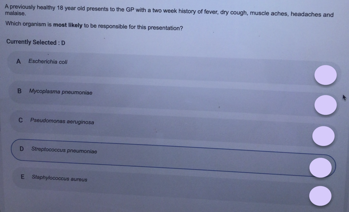 = D. Streptococcus pneumoniae