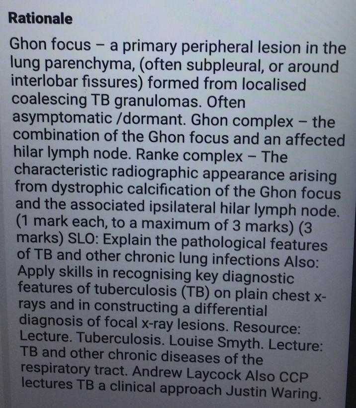Define the terms Gjon focus, Ghon complex, and Ranke complex.