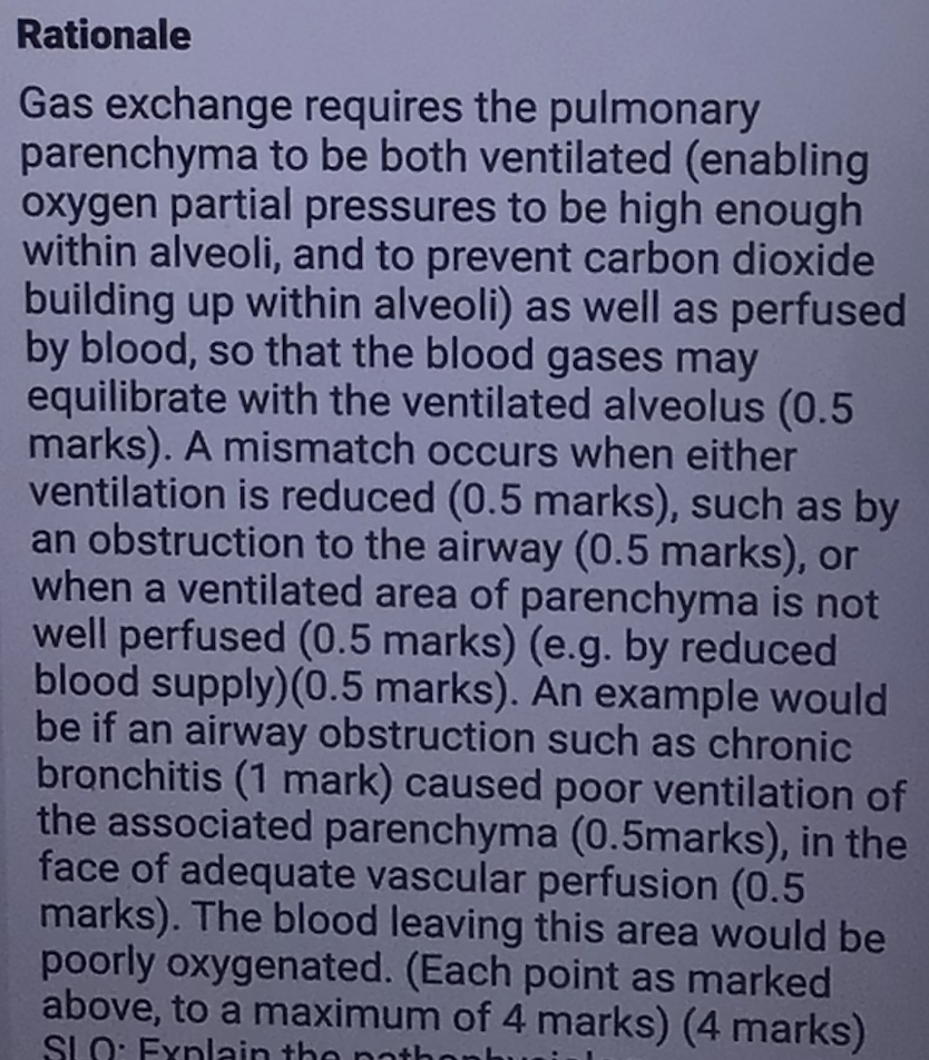 What is meant by a ventilation-perfusion mismatch? Support your explanation with an example which would cause lowered partial pressure of oxygen in blood leaving the lung.