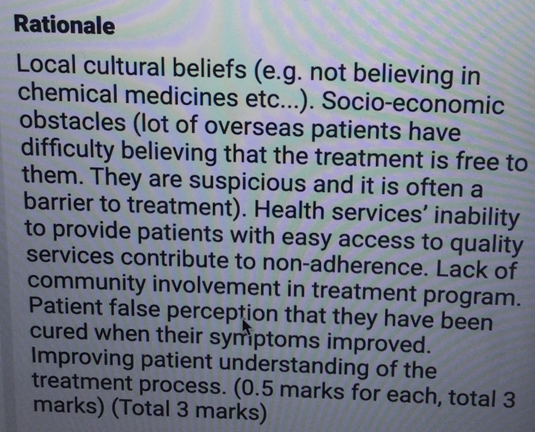What psychosocial factors contribute to patients’ adherence to long-term treatment of pulmonary TB?