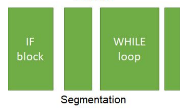 Segmentation is the splitting up of memory into logical sized divisions, known as segments, which vary in size. These represent the structure and logical flow of the program.