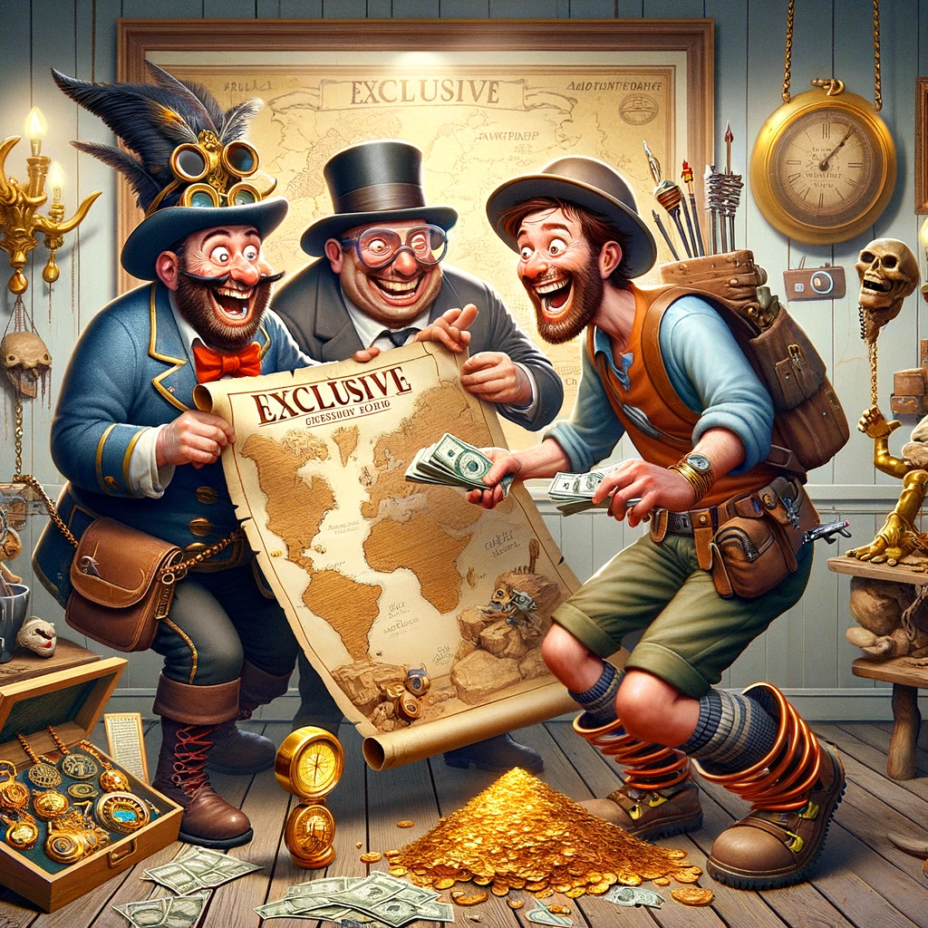 Not only are they going to con you with a fake treasure map, but they’re also planning to charge you for the exclusive “adventure gear” needed for the hunt.