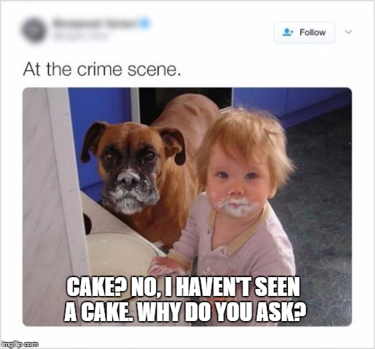 Not only did he eat the entire cake, but he also blamed the dog for its disappearance.