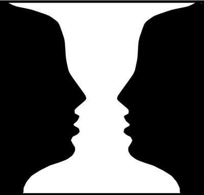 The spectators at the art exhibit each saw a different image in the ambiguous painting.