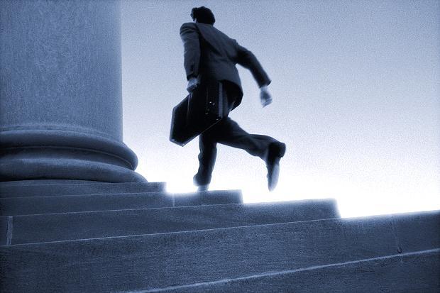 The man was in quasi-uniform as he was running through the doors 15 minutes late for work.