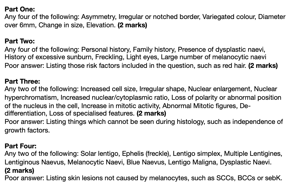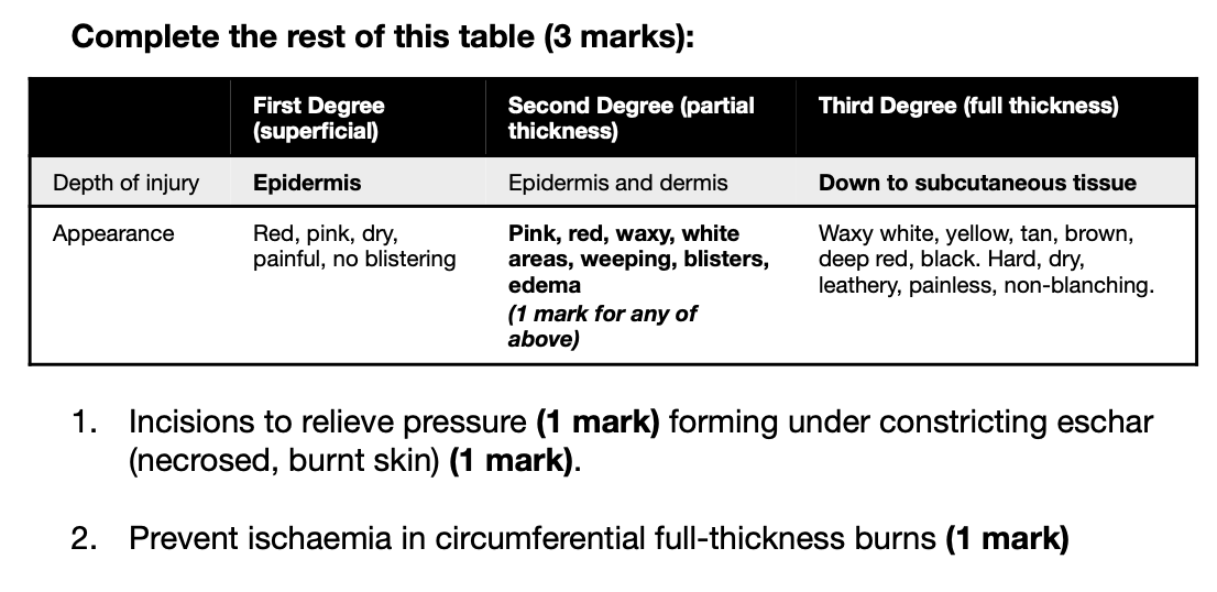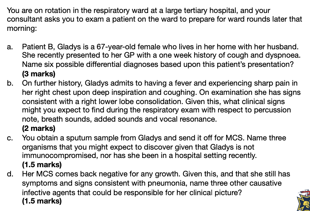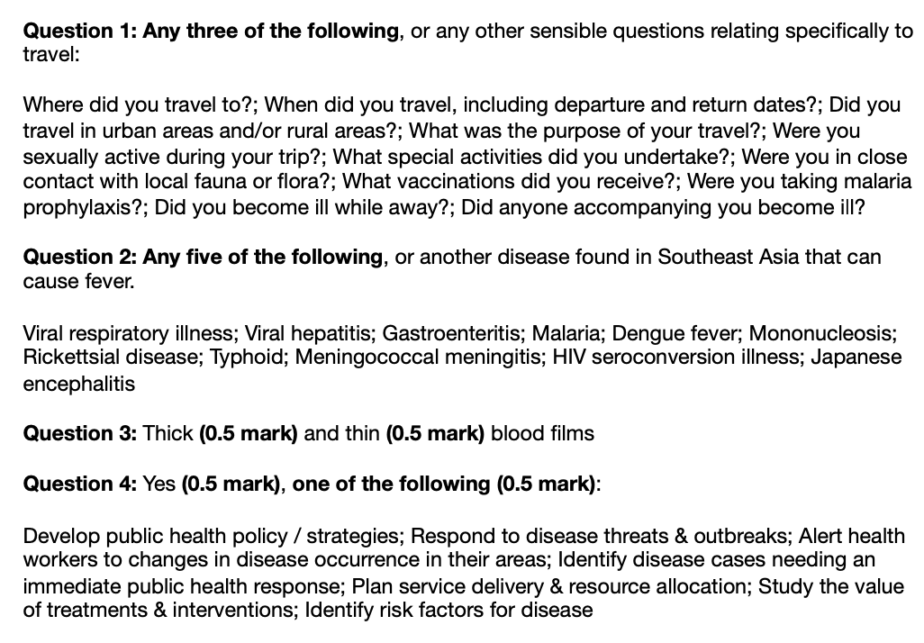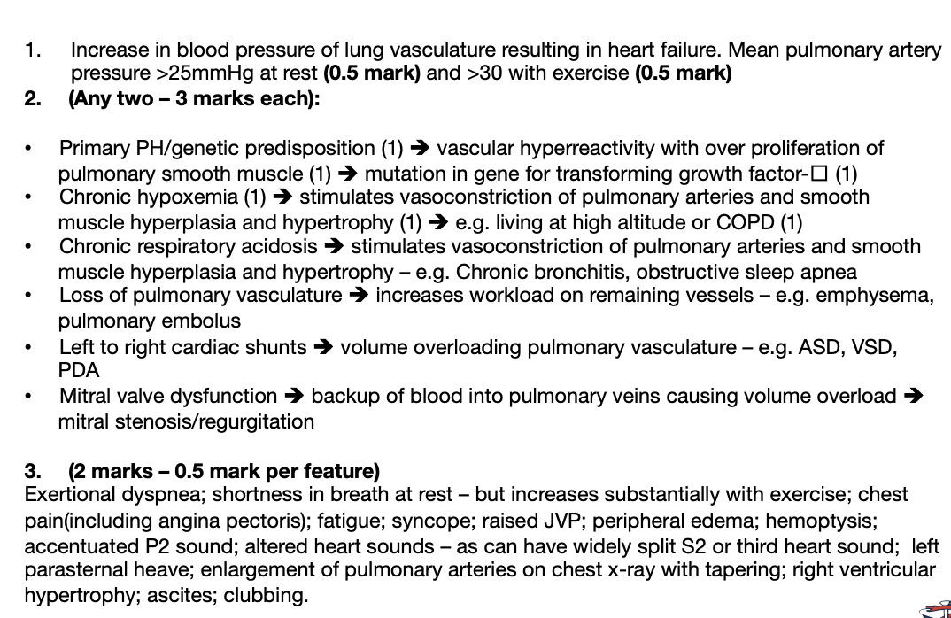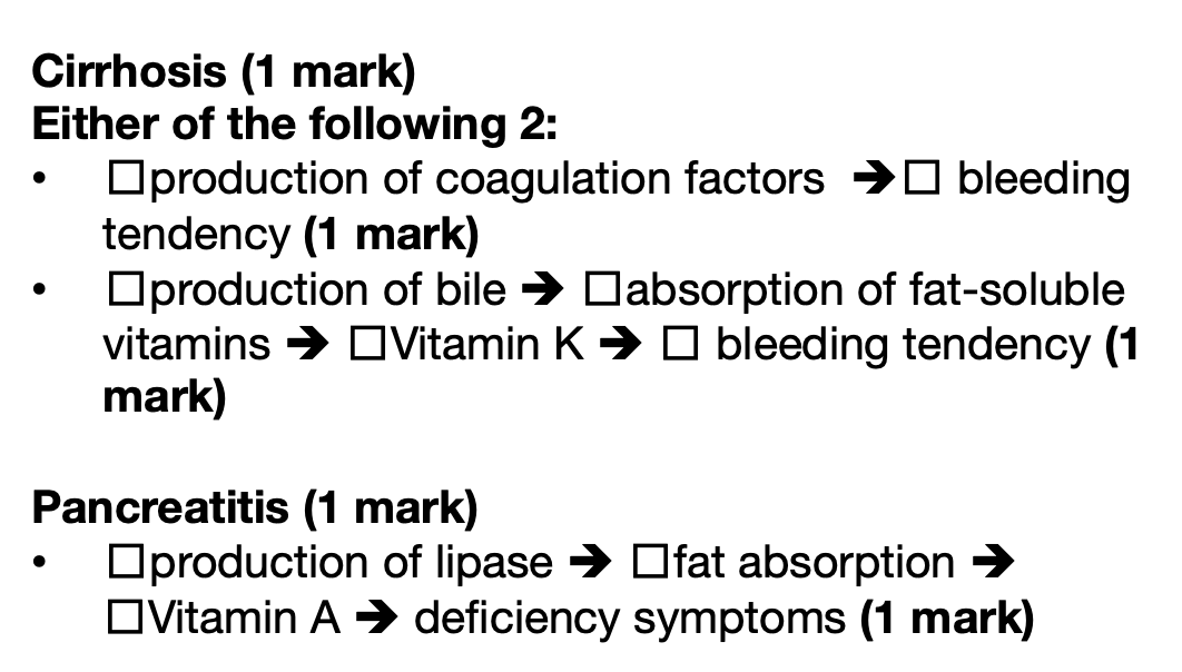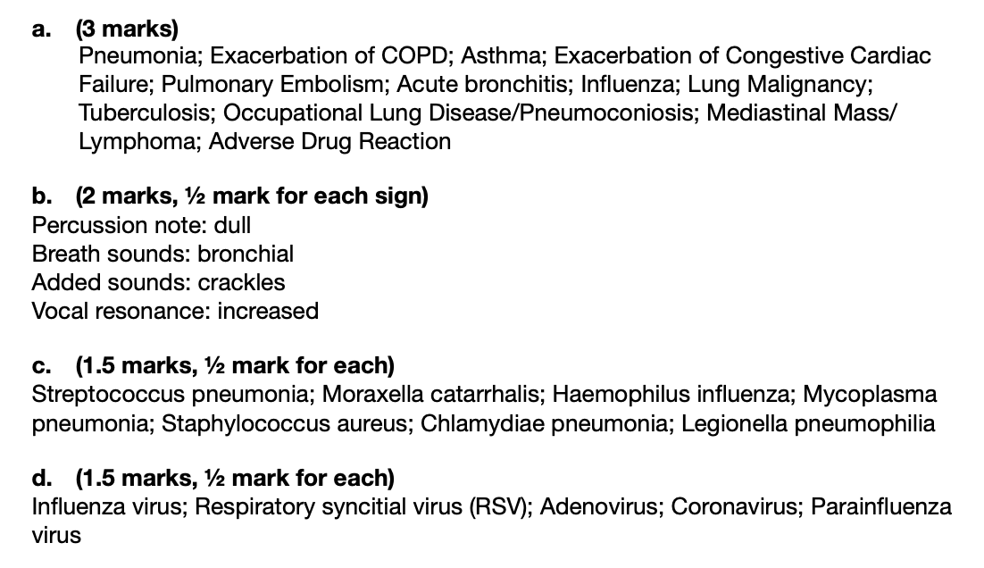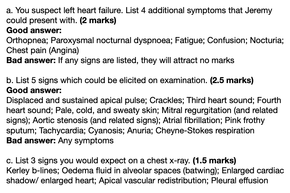 For four additional marks, give additional relevant information – e.g., give examples, list criteria or describe clinical signs.