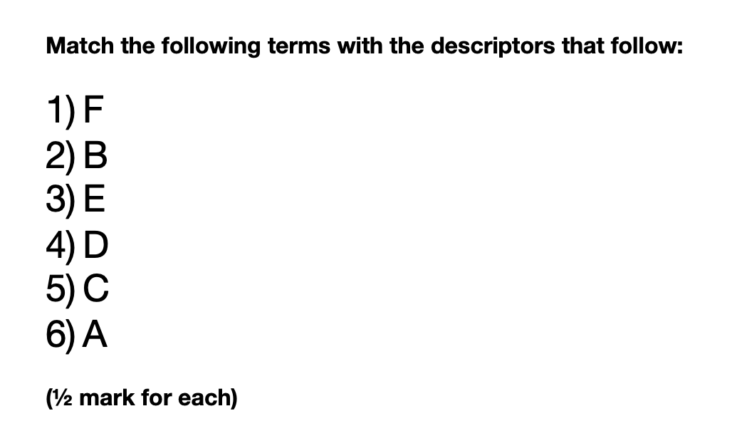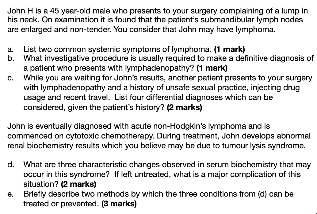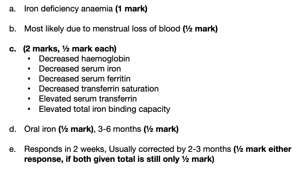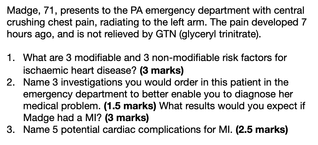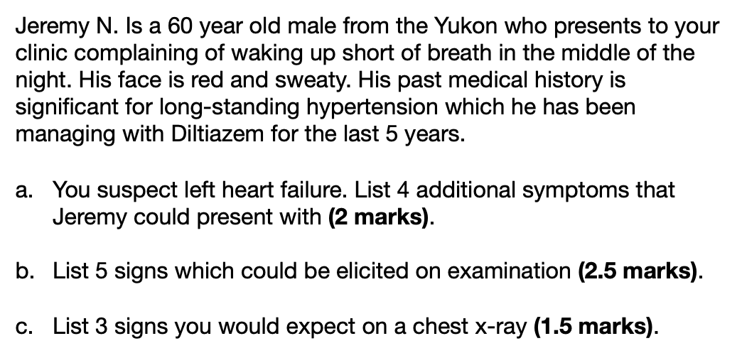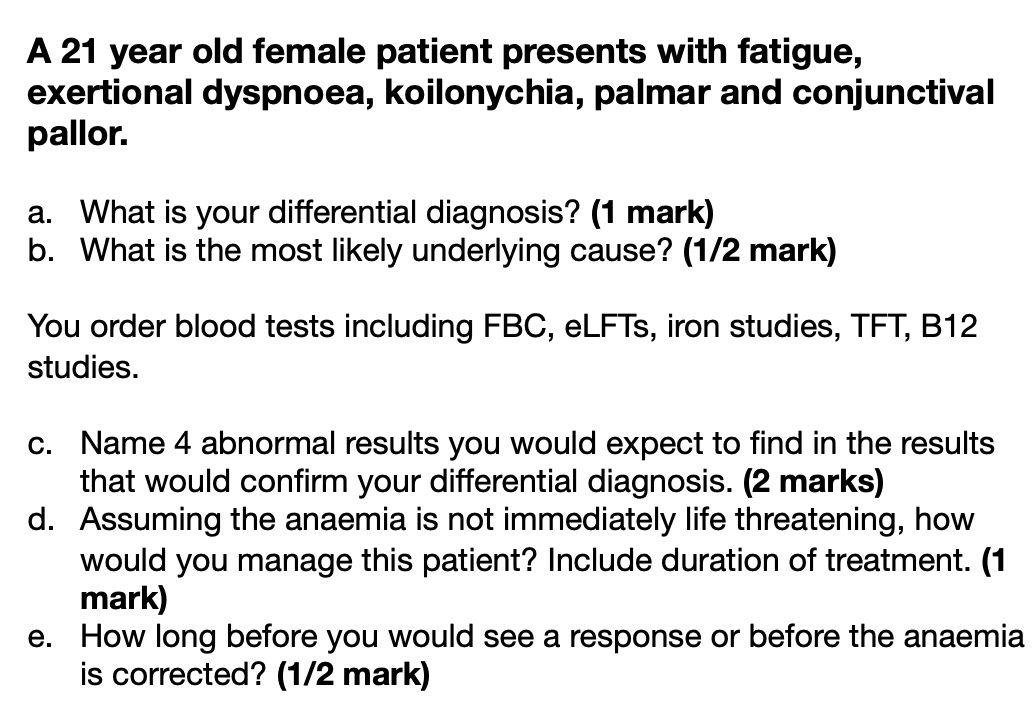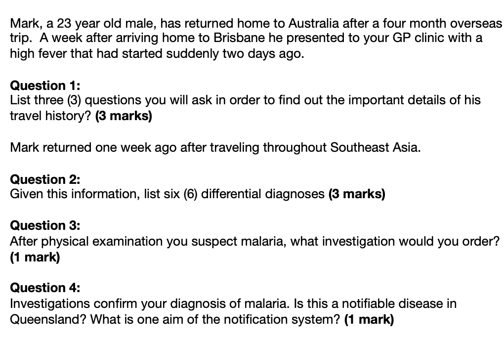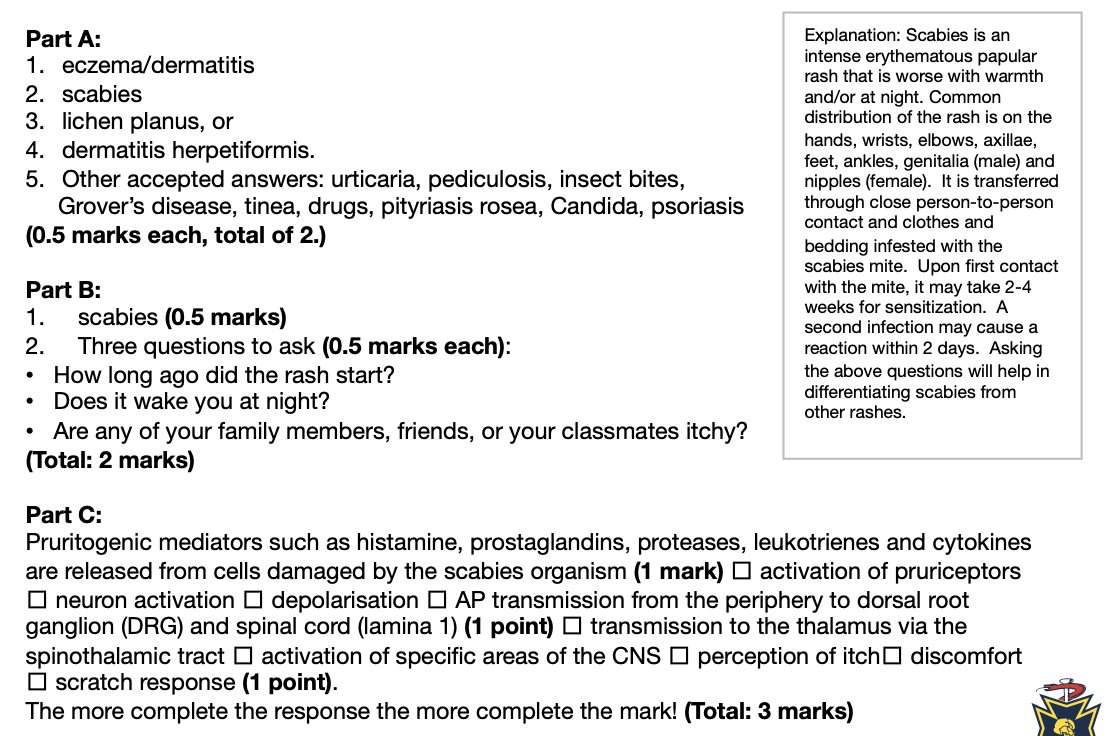 For four additional marks, give additional relevant information – e.g., give examples, list criteria or describe clinical signs.