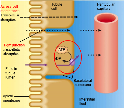 1. Na+ AT over basolateral mem tubule cell -> ISF