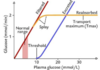 blood plasma osmolarity monitored osmoreceptors in hypothalamus * incr = incr rate of firing of neurons = incr ADH release decr below threshold = neurons no fibre = no ADH = dilute urine | incr osmolarity by 3% = stim thirst