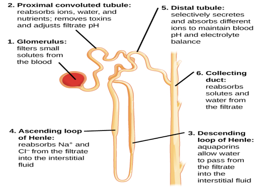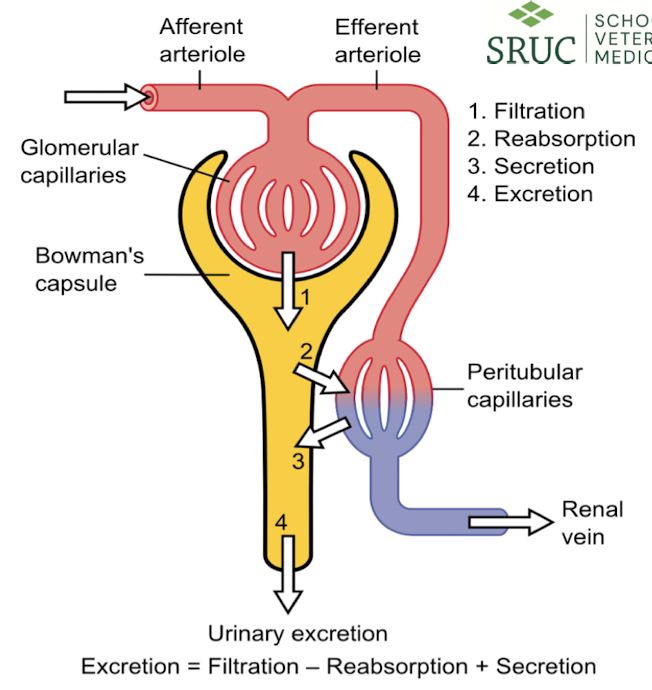 A diagram of the Nephron + Urinary excretion
