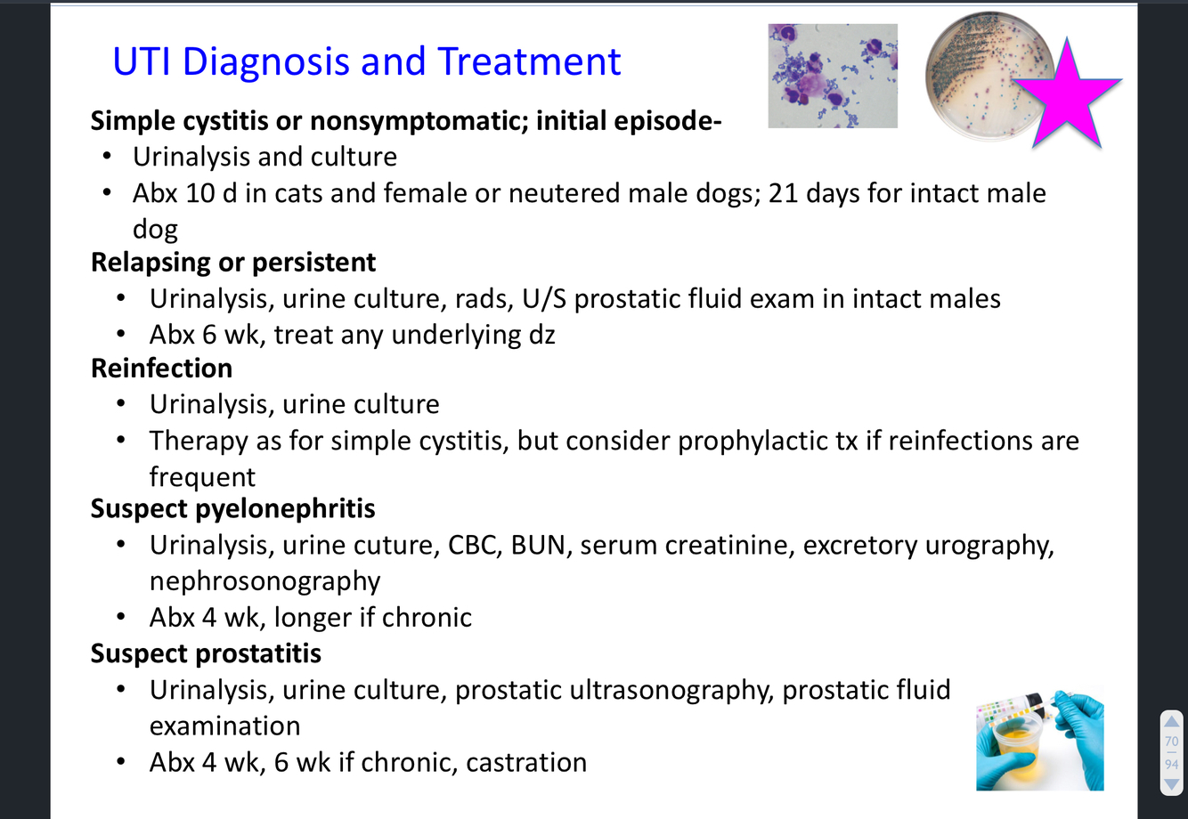 What are the various methods of diagnosing and treating UTIs?