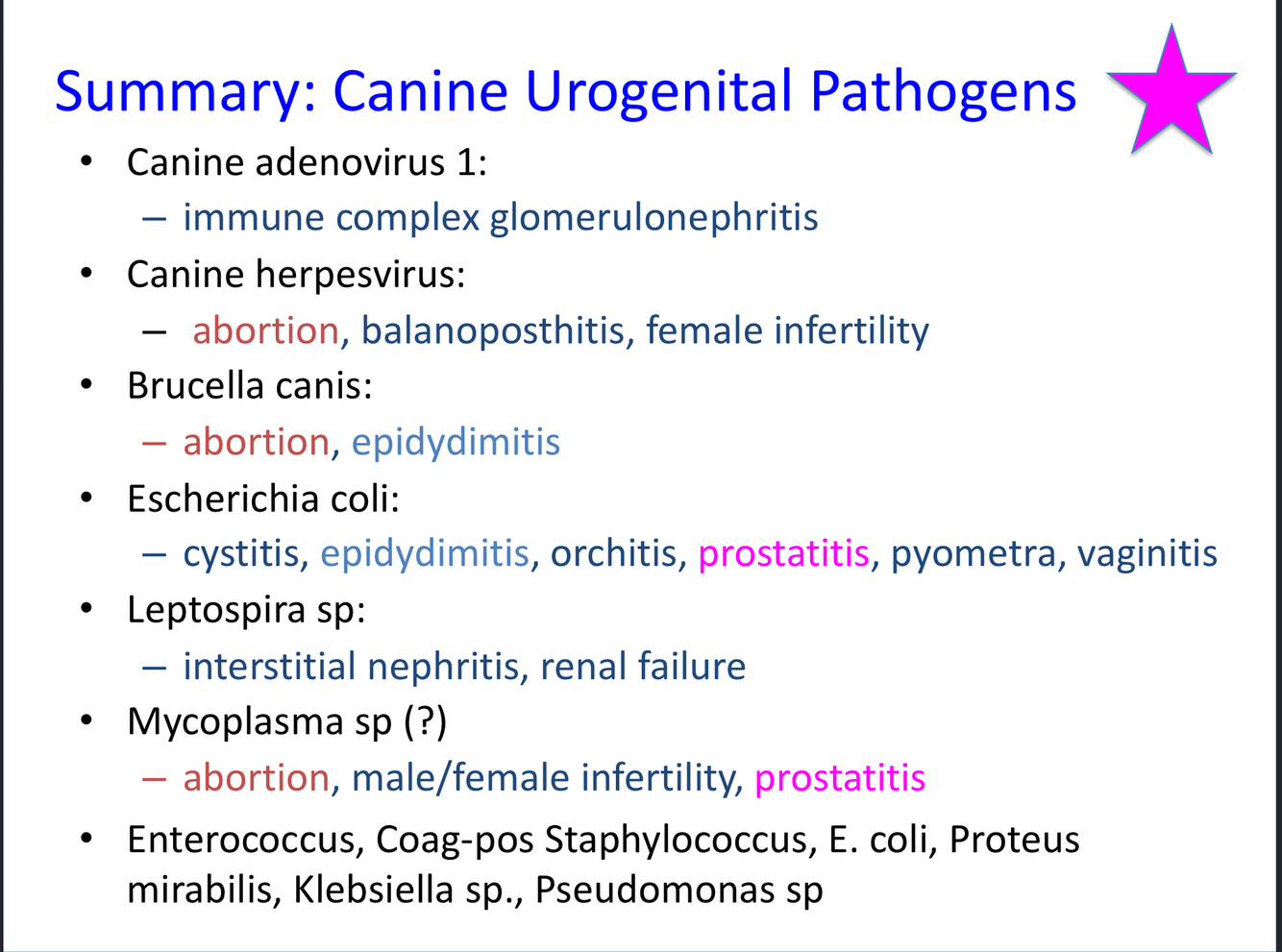 What are the primary canine urogenital pathogens?
