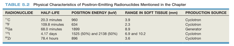 b. 109.8 minutes. The half-lives of other commonly used radionuclides for PET imaging can be found in Table 5.2