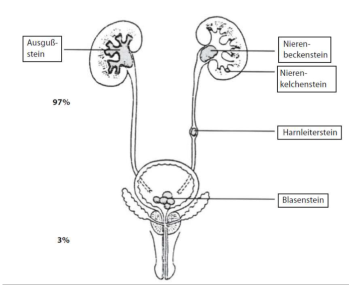 Lokalisationsorte für Harnsteine (Urolithiasis)