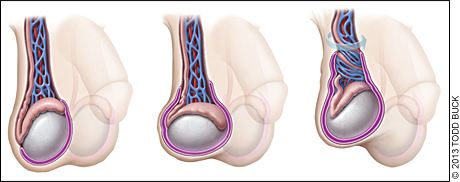 Occurs when the spermatic cord (from which the testicle is suspended) twists, cutting off the testicle’s blood supply