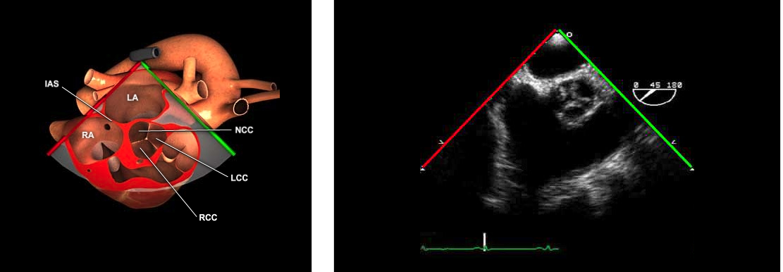 Right coronary cusps is at the bottom of image (Anterior structures are more towards the bottom of the image)