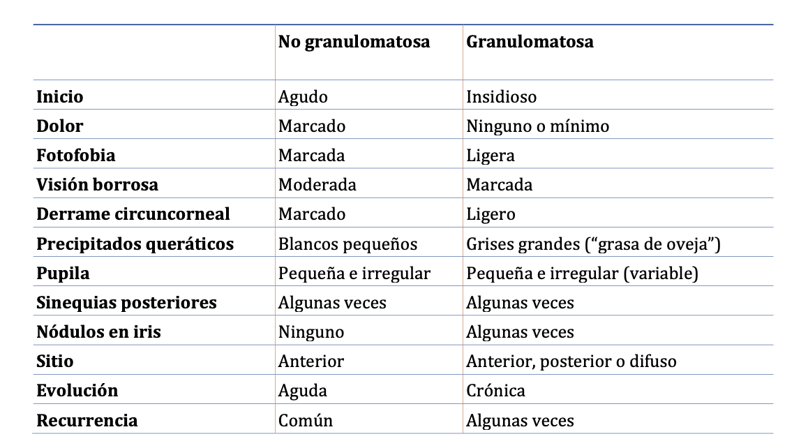 Diferencia uveitis granulomatosa de no granulomatosa