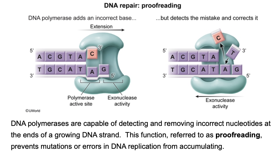C.Correction of mismatched nucleotides in the middle of a completed strand