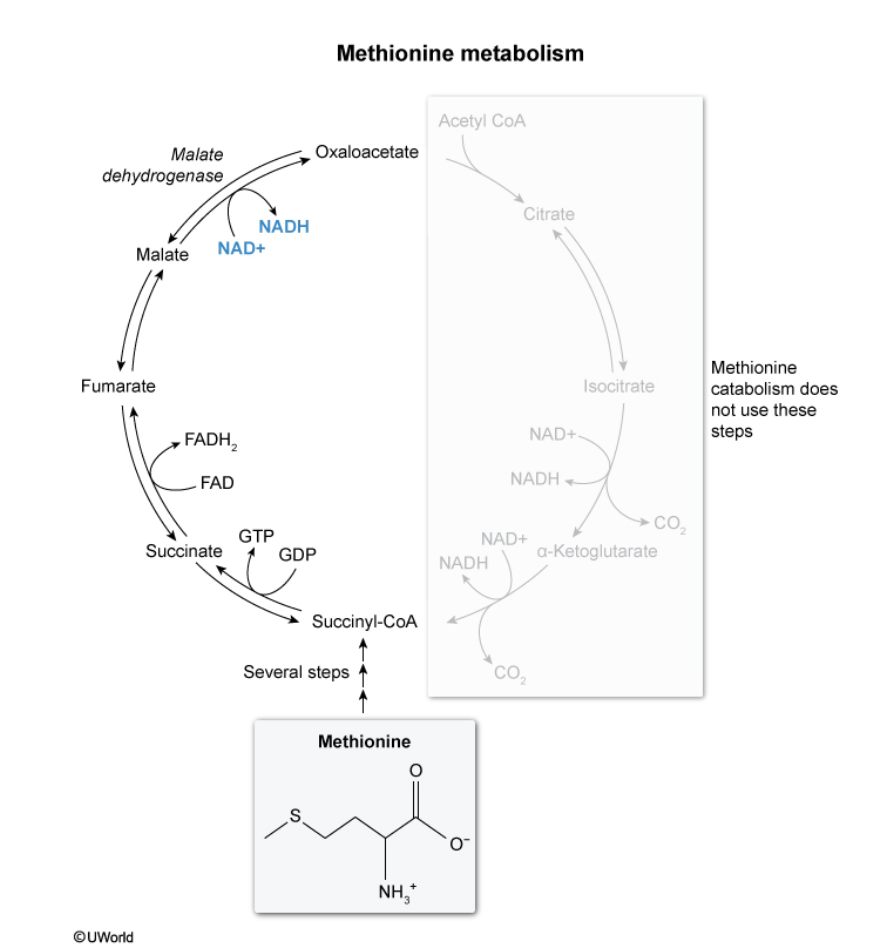 The amino acid methionine can be converted to succinyl-CoA to enter the citric acid cycle. How many NADH molecules can be produced by each methionine molecule that enters the citric acid cycle by this pathway?